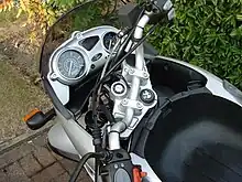 While the F650CS was similar to the GS released in 2000, it had several unique features including a single-sided swingarm, toothed belt drive, modular soft case baggage, and a storage area in what would traditionally be the top tank of the bike.[4] The fuel tank was instead placed underneath the rear half of the seat, with the fuel filler cap on the right hand side of the rear of the bike.[4]