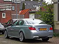 The BMW M5 is a high-performance variant of the BMW 5 Series marketed under the BMW M sub-brand. It is considered an iconic vehicle in the sports sedan category.[1][2] The majority of M5s have been produced in the sedan (saloon) body style, but in some countries the M5 was also available as a wagon (estate) from 1992 to 1995 and from 2006 to 2010.[3][4]