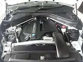 The exhaust manifold design, called Cylinder-bank Comprehensive Manifold (CCM) by BMW, aims to reduce the pressure fluctuations to reduce throttle lag and exhaust back-pressure.[8] The twin-scroll turbocharger uses 2 sets of exhaust duct to turn 1 turbine wheel, with cylinders 1–3 and 4–6.[9] The engine management system is Bosch MEVD 17.2, and compatible fuels are ROZ (RON) 91–98 octane (minimum RON 95 is recommended),[10][11]