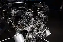 The N74 features twin turbochargers, which are not present on its naturally aspirated BMW N73 predecessor. The turbochargers are located on the outside of the engine and use a boost pressure of 11.6 psi (0.8 bar).[1] In its base configuration the engine has a compression ratio of 10:1 and a specific fuel consumption of 245 g·kW−1·h−1[2]