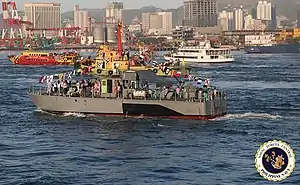 - ↑ Sources vary on weapons mount of this ship, with most indicating the presence of a Bushmaster 25mm chain gun on a Mk.38 mount.[1][5] Recent photos does not show said weapon or mount, so are other ships from the first batch (PG-370 to PG-378)[8]
