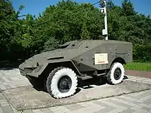 - BTR-40 converted into an armoured car armed with a medium machine gun in a cube-shaped turret on top of the superstructure inside the troop compartment. It also has four smoke grenade launchers on both sides of the hull.