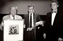 The winner of Best Buff-Film in 1993 was the French film Children of wreckers. The award was accepted by Raymond Lefevre, festival director of the French Children's Film Festival in Laon. Prize givers were Johan Bengt-Påhlsson (in the middle) and festival general Ola Tedin.