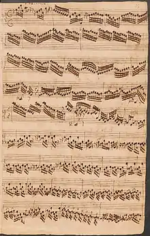 The opening of the BWV 564 Toccata, in the hand of Johann Peter Kellner - showcasing the elaborate manual passage-work, and most of the virtuoso pedal solo