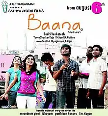 Baana Kaathadi (transl. Kite) is a 2010 Indian Tamil-language romance film written and directed by Badri Venkatesh. The film stars Aatharvaa and Samantha in lead roles. Featuring music scored by Yuvan Shankar Raja, cinematography by Richard M. Nathan and editing by Suresh Urs, the film, which was launched in March 2010,[1] released on 6 August 2010. It is the last movie of Murali, who made a special appearance in this movie before his death in September 2010. The movie received critical acclaim and an above average success at the box office. Baana Kaathadi marked Aatharvaa's feature debut film and Samantha's debut film in Tamil.