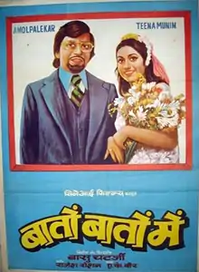 Baton Baton Mein (transl. In Between Talks) is a 1979 Indian romantic comedy film, produced and directed by Basu Chatterjee. The film stars Amol Palekar and Tina Munim. David, Pearl Padamsee, Asrani and Ranjit Choudhary appear in supporting roles. The film's music is by Rajesh Roshan.