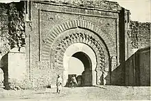 Bab Agnaou (Arabic: باب اكناو; Berber languages: ⵜⴰⵡⵓⵔⵜ ⴰⴳⵏⴰⵡ; sometimes transliterated as Bab Agnaw[1]) is one of the best-known gates of Marrakesh, Morocco. Its construction is attributed to the Almohad caliph Abu Yusuf Ya'qub al-Mansur[2] and was completed around 1188[3] or 1190.[4]