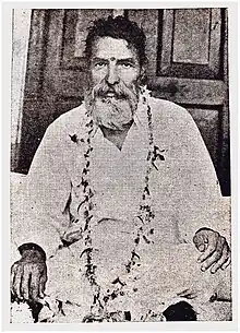 Baba Faqir Chand, (18 November 1886 – 11 September 1981) was an Indian master of Surat Shabd Yoga, or consciously controlled near death experience.[1] He was one of the first saints or gurus of Sant Mat tradition to openly speak and write against the deceptive and harmful practices of modern guruism and religious intolerance. As a highly pragmatic individual, Faqir also strove to explain the various practices and principles of Sant Mat based on his own experiences and in the context of modern science and psychology. He was also the first Sant Mat guru to talk about the phenomena consisting of a believer experiencing a subjective projection of a sacred or holy form of a guru or idol without the conscious knowledge of the person at the center of the experience, i.e., the guru. This was termed the 'Chandian Effect', and described by researcher David C. Lane.[2][3] Faqir Chand claimed that he had no knowledge of his form manifesting before a person and helping them with their worldly or spiritual problems. He fervently expressed that in his experience, the real helper is one's own true self and faith. Mark Juergensmeyer, another researcher on new religious movements (including Radha Soami Mat), intrigued by the uniqueness of Faqir Chand's experiences, also interviewed him. This insightful interview was included in Faqir's autobiography.[4]
