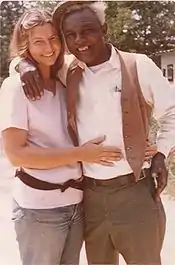 Poet Hedwig Gorski with Babe Stovall on a 1973 trip to rural Mississippi. Stovall was arrested for carrying a fifth of whiskey in his back pocket, while jamming at the home of blues guitarist Roosevelt Holts, who lived in a dry county.