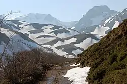 The bottom of the Babia valley is wide, surrounded by peaks that exceed 2000 meters of altitude, valleys shaped by glacierses. The Ubiña massif stands out for its altitude and majesty, with Peña Ubiña at 2414 meters, one of the highest mountains in the Cantabrian Mountains.