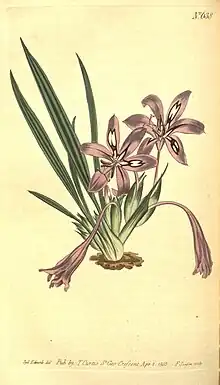 - ↑ Manning, John; Goldblatt, Peter (2008). The Iris Family: Natural History & Classification. Portland, Oregon: Timber Press. pp. 175–178. ISBN 978-0-88192-897-6.