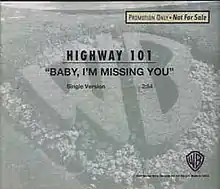 "Baby, I'm Missing You" is a song written by Steve Seskin and Nancy Montgomery, and recorded by American country music group Highway 101. It was released in January 1992 as the third single from the 1991 album Bing Bang Boom. The song reached #22 on the Billboard Hot Country Singles & Tracks chart.[1]