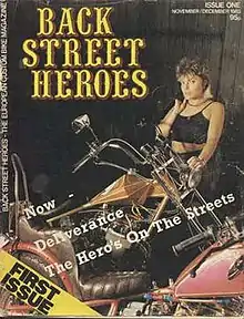 Back Street Heroes "celebrates the sex, drugs and rock 'n' roll, black leather, long hair and open exhausts aspect of motorcycling,"[4] targeting, like its US counterpart Easyriders, the "hardcore" niche.[5] It is one of a handful of biker magazines that included fiction until 2016.[6] The magazine tied together geographically isolated enthusiasts of biker culture by keeping them up to date on custom bike mechanical techniques and styles, and motorcycle rallies, as well related culture, such as biker music and their music.[7] All this earned the magazine credibility with the mainstream press on the subject of outlaw motorcycle clubs.[8][9]