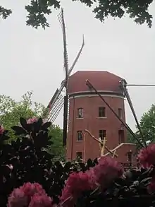 One of the premier sites for tourists is a windmill originally built in 1811 in Westerstede. It is part of a historical museum farm consisting of 14 houses and auxiliary buildings that were moved to their today's location from 1909 to 2004.[8] One of the buildings is called the Spieker and shelters a restaurant of the same name, integrating into the centuries-old architecture.
