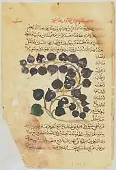 - ↑ Day, G.E., "Mesopotamian Manuscripts of Dioscorides," Metropolitan Museum of Art, n.d. Online: The manuscript has no colophon with date, but it has a 4-page introduction written by Mihran ibn Mansur ibn Miihran, who translated it for Najm ad-din Alpi, the Urtuqid prince, ruler from 1152 to 1176.