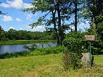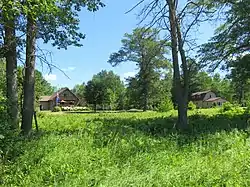 Bagley Junction was inhabited by Native Americans before the arrival of white settlers. Four oval burial mounds known as the Bagley Junction Mounds were mapped by Harvey O. Younger (1889–1956) in 1913,[10] when he also discovered a stone hoe at the site.[11] Shell content indicates that the mounds were formed from soil taken from the bank of the Peshtigo River.[12] The mounds may be associated with a Late Woodland habitation.[10] The burial mounds were further investigated in 2007 during an archaeological survey for a road project. The survey identified two mounds about 75 feet (23 m) apart between Bagley Road and the Peshtigo River; the southern mound measures 30 by 18.5 feet (9.1 m × 5.6 m) and is about 15 inches (380 mm) high, and the northern mound measures 22 by 19 feet (6.7 m × 5.8 m) and is about 18 inches (460 mm) high. There is no surface evidence of the other two mounds mapped in 1913; it is believed they were destroyed by a former driveway that is now used as a snowmobile trail.[10]