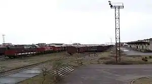The Bajzë Rail Station (Albanian: Stacioni Hekurudhor i Bajzë) is a railway station located in Bajzë, Albania.[1] It is operated by Hekurudha Shqiptare (Albanian Railways) and part of Montenegrin-Albanian cross-border freight line between Podgorica, capital of Montengero, and Shkodër, Albania. Two freight trains pass daily through the station, hauling over 10,000 tonnes of commodities monthly.[2] Long term plans exist to establish and operate international passenger trains between Albania and Montenegro via Bajzë. The vast majority of Albanian entrepreneurs import their goods through the railway line from all over Europe, as transport through train is about 50% cheaper than road transport.[3] Cleaning of toxic chemicals, which had been dumped during 1991-1992, finished in 2009.[4]