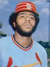 McBride made his major league debut for the Cardinals in 1973, but he retained his rookie status after only appearing in 40 games that year.[8] He became known for a distinctive appearance, as he wore one of the largest Afro hairstyles in the major leagues. When he stepped to home plate to bat, McBride made a ritual of wiping away the chalk lines that made up the batter's box.[9] He used an unconventional batting stance, placing his weight on his front foot rather than on his back foot.[10]