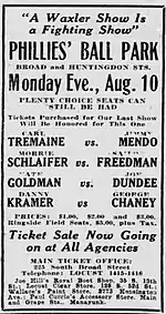 Boxing matches were held at the ballpark and attracted large crowds. 35,000 spectators saw George Godfrey lose on a foul to Primo Carnera on June 23, 1930.[54]