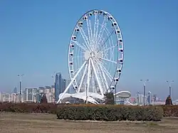 Baku Ferris Wheel, also known as the Baku Eye[2][3][4] and Devil's Wheel (Azerbaijani: Şeytan çarxı), is a ferris wheel on Baku Boulevard in the Seaside National Park of Baku, capital of Azerbaijan.The wheel was built by the Dutch company Dutch Wheels.[5] It was opened 10 March 2014 by Azerbaijani president Ilham Aliyev,[1] and opened to the public two days later.[6]