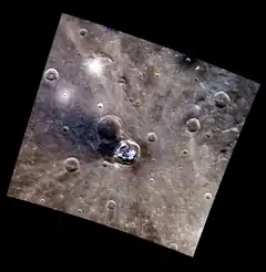 Balanchine is a crater on the planet Mercury. It possesses a ray system of slightly bluish rays. These rays inspired the name of the crater due to their similarity to the tutu in George Balanchine's Serenade.[1]