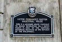 Built in 1897,[2] the house was constructed when Victor Gaston's wife died and during the time when he was residing in his father's hacienda, Hacienda Buen Retiro. The structure housed Victor Gaston and his twelve children from 1901 until his death in 1927. Left unused by the family, the structure was abandoned in the mid-1970s and fell into disrepair until one of the heirs, Msgr. Guillermo Ma. Gaston, together with a group of concerned Negrenses formed what would later become the Negros Cultural Foundation. In 1992, Msgr. Guillermo Ma. Gaston donated the Victor Gaston house to the Philippine Tourism Authority (now known as the Tourism Infrastructure and Enterprise Zone Authority). With donations from prominent individuals and a PhP5,000,000.00 assistance from the Philippine Tourism Authority, the structure was repaired and furnished with period furniture and fixtures. The museum was officially inaugurated on October 6, 1990. Pursuant to Board Resolution No. 1 dated March 8, 1994 of the National Historical Institute of the Philippines (National Historical Commission of the Philippines), it was listed as a heritage house.