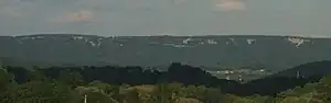 Bald Eagle Mountain – once known locally as Muncy Mountain[1] – is a stratigraphic ridge in the Ridge-and-Valley Appalachians of central Pennsylvania, United States, running east of the Allegheny Front and northwest of Mount Nittany. It lies along the southeast side of Bald Eagle Creek and south of the West Branch Susquehanna River, and is the westernmost ridge in its section of the Ridge-and-Valley Appalachians. The ridge line separates the West Branch Susquehanna Valley from the Nippenose and White Deer Hole valleys, and Bald Eagle Valley from Nittany Valley.