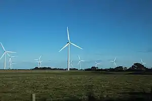 The Bald Hills Wind Farm is an operating wind farm located approximately 10 km south east of Tarwin Lower in South Gippsland, Victoria, Australia. The Bald Hills Wind Farm site covers approximately 1,750ha of largely cleared cattle and sheep grazing farmland. The turbines are located in three distinct areas, one to the west and one to the east of Tarwin Lower Waratah Road, and one near the end of Bald Hills Road.[1]