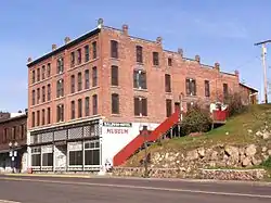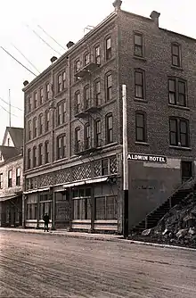 The Baldwin Hotel is a historic hotel building in Klamath Falls, Oregon, in the United States. It was built in 1905 and added to the National Register of Historic Places on October 2, 1973. Originally built to be a hardware store by George Baldwin, the building was converted into a hotel in 1911 as George saw the potential profit from the railroad coming to town. He anticipated the railroad to come by the Link River, across the street from the building's location. Unfortunately for George, the railroad was instead built at the other end of Main Street, by the current Klamath County Museum. Nonetheless, the hotel was built and operated with unique characteristics. As the site of construction was a rocky hillside, the building was constructed by carving away the basalt and creating an incredibly sturdy foundation. This hotel has almost all rooms connected in order to create the ability to rent out either one room, or an entire suite of rooms. George's thinking behind this was that people would want to be able to have an office and apartment all connected. It also was the first building to have indoor plumbing in every room, even though running water wasn't available until 1908.