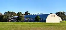Former Migrant Hostel Kitchen/Dining Room, then a university science centre and currently conserved, refurbished and used as a child care facility. The building has three parts: a single storey weatherboard clad kitchen area with clerestory ventilation; a 100 ft × 41 ft (30 m × 12 m) Quonset hut with curved corrugated steel roof/walls; a gable roofed corrugated steel clad extension