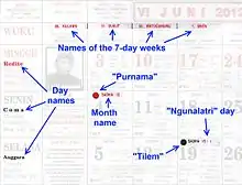 The names the twelve months are taken from a mixture of Old Balinese and Sanskrit words for 1 to 12, and are as follows:[1][2]