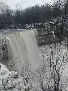 Two of Jacob's sons, John and George, purchased 1200 acres (486 ha) of land in Niagara in 1807 from Thomas Butler, brother of Col. John Butler.[4] Twenty Mile Creek, which runs through the area, has two waterfalls. The Ball brothers built a grist mill, a saw mill at the lower falls and a woollen mill at the upper falls.[1] During the War of 1812, the settlement was heavily utilized by the military, as part of a regiment was stationed there for a time.[3]