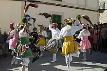 The ball dels cossiers has been found on Majorca since the 14th century, when it was brought to the island from Catalonia following the Aragonian conquest of the island under King Jaime I.[1] The earliest recorded evidence for the dance has been found in a 1544 manuscript in Sóller.[2] However, some scholars argue that the dance has its roots in pagan nature spirit worshiping rituals native to the island, and that the modern dance is a synthesis of these ancient rituals and relatively modern Catalan traditions.[1]