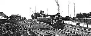 ![]() Frontier Mail leaving the Ballard Pier station in the 1930s | |