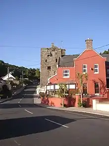 The village contains a 15th-century Norman castle or tower house, which belonged to the Knights Hospitallers and was built around 1480,[4] though it is thought the site's use was initially as a Preceptory, as far back as the 12th-century.[5] The castle was occupied by Cromwellian forces during the Irish Rebellion of 1641, and was later used as a transportation point for those displaced by the Act for the Settlement of Ireland 1652. It is from this association that the phrase "Go to Ballyhack" was coined.[3]