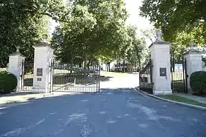 The area of the Baltimore National Cemetery was once part of an elevated site in Baltimore, referred to as early as 1750 as the Cloud-Capped estate. It was originally owned by the Baltimore Company and Charles Carroll of Carrollton. In 1890 it was acquired by Blanchard and Susan Randall. When the nearby Loudon Park National Cemetery was deemed full, the War Department surveyed the area for a new site. In 1936 the federal government took possession of the land for a cost of $95,000, and began converting the estate to "Little Arlington". The old mansion was demolished, fences were put up, roads were constructed, and landscaping was done as part of a Works Progress Administration to invest in infrastructure during the Great Depression. The first interment took place on December 22, 1936, but the cemetery was not formally dedicated until May 30, 1941.[2] In 2019, The Durable Restoration Company provided restoration of the exterior Tudor style stone facade and slate roof.