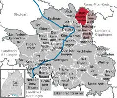 Adjoining communities are in turn the town Weinstadt in the northwest, the community Winterbach in the north and northeast, both in the Rems-Murr-Kreis. In the east is the community Lichtenwald, in the south the community Reichenbach an der Fils, in the southwest the town Plochingen, in the west on only a short section the county town Esslingen am Neckar and in the west the community Aichwald; the last five belong all to the own District Esslingen.