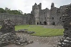 The castle fell out of use following an attack by Robert the Bruce in 1308, which left the property uninhabitable. At some point in the 14th century, the castle and estates of Balvenie passed to the Earl of Douglas. Nothing is documented as to how the Black Douglases first acquired the castle but the most likely account is that it came with the marriage of the heiress Joanna Murray to Archibald 'the Grim' , 3rd Earl of Douglas in 1362. His son and successor Archibald Douglas, 4th Earl of Douglas granted his younger brother James Douglas, 7th Earl of Douglas, latterly known as James 'the Gross' , the lordship of Balvenie in 1408. James's main residence was at Abercorn Castle, a coastal fortress to the west of Edinburgh and Balvenie Castle's use was as temporary accommodation when the need arose.
