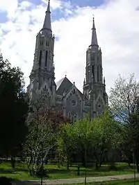 After they settled, the Banat Bulgarians began to take care of their education and religion. The Neo-Baroque church in Stár Bišnov was built in 1804 and the imposing Neo-Gothic church in Vinga in 1892. Until 1863, Banat Bulgarians held liturgies in Latin and "Illyric". Illyric was a strain of Croatian which had spread in the communities before they migrated to the Banat. However, with their cultural revival in the mid-19th century, their vernacular was gradually introduced in the church. The revival also led to the release of their first printed book, Manachija kathehismus za katolicsanske Paulichiane, in 1851. "Illyric" was also substituted with Banat Bulgarian in education in 1860 (officially in 1864). In 1866, Jozu Rill codified the dialect with his essay Bálgarskotu pravopisanj.[21] After the Ausgleich of 1867, the Hungarian authorities gradually intensified the Magyarization of the Banat. Until World War I, they imposed Hungarian as the main language of education.[22]