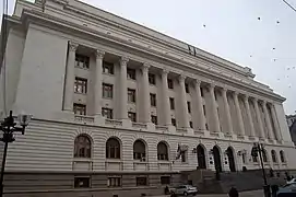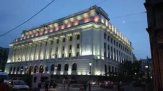 The head office of the National Bank of Romania with the view of Lipscani Street is one of the most imposing and massive bank edifices in Romania, nowadays a historic, art monument, and protected as such. It was erected on the former site of the inn built by Șerban Cantacuzino (1678–1688).