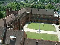 The foundation was originally known as Bancroft's Hospital and until the late 19th century also acted as home for almsmen who had been freemen of the Company of Drapers.[2] In 1884 the almshouse was abolished and the school moved to a new site at Woodford Green and the original buildings were demolished; the site is now occupied by Queen Mary, University of London.