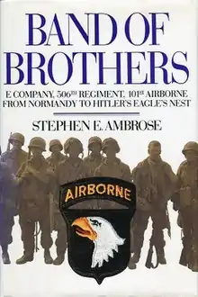 Band of Brothers, subtitled, E Company, 506th Regiment, 101st Airborne: From Normandy to Hitler's Eagle's Nest, by Stephen E. Ambrose, is an examination of a parachute infantry company in the 101st Airborne Division in the European Theater during World War II. While the book treats the flow of battle, it concentrates on the lives of the soldiers in and associated with the company. The book was later adapted into a 2001 miniseries for HBO by Tom Hanks, Erik Jendreson, and Steven Spielberg, also titled Band of Brothers.