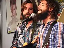 ![]() Band of Horses at the 2006 SXSW festival. From left to right Hampton, Bridwell, Barrett (hidden), Brooke, Arnone. | |