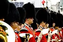 The Band of the Ceremonial Guard (La Musique de la Garde de cérémonie) is an ad hoc military band that is attached to the Canadian Forces Ceremonial Guard in Ottawa. All members of the band are fully trained members of the Canadian Armed Forces (CAF)[1] and consists of personnel principally from the two Foot Guards regiments (the Governor General's Foot Guards from Ottawa and the Canadian Grenadier Guards from Montreal) and has even since 2007 been manned by a pan–Canadian Forces approach that is inclusive to musicians from the Royal Canadian Navy, Canadian Army and Royal Canadian Air Force. The band forms a separate company within the CG and rely on the Headquarters Company for administration and support personnel. In full composition, the band is active from April to August.[2]