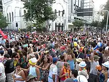 Banda de Ipanema is one of the largest Carnival blocks of Rio de Janeiro's street Carnival festivities. The first parade happened in 1965, when Brazil was under a military dictatorship. In 2004 it was declared part of the city's cultural heritage.[1] The first parade happens on Saturday two weeks before Carnival, and they march again on Carnival Saturday and Carnival Tuesday (Mardi-Gras).