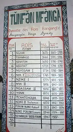 The dominant tribal group is the Bamileke people. The traditional society is ruled by a tribal chief or king.