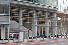 As part of the building's construction, a passageway was built under the north side of 42nd Street connecting the Bryant Park complex with the Times Square–42nd Street station.[16] However, the passageway remained closed even when the building was completed. As part of the reconstruction of 42nd Street Shuttle from 2019 to 2022, the passageway would have been opened and a new entrance would be built on the north side of 42nd Street between Broadway and Sixth Avenue.[20][21] Because the Durst Organization did not want to pay for an underpass between the new shuttle platform and the Bank of America Tower's passageway, a parallel ramp between the two stations was built instead, leaving the Bank of America Tower's passageway unused.[22]