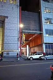 An enclosed pedestrian walkway, known as Anita's Way, runs through the western end of the building and connects 42nd and 43rd Streets.[49][105] Measuring 30 feet (9 m) wide and 30 feet high,[70] it serves as an entrance to Stephen Sondheim Theatre and as a performance space.[106] The passageway is named after Anita Durst, Douglas Durst's daughter and a leader of arts organization chashama.[105] The organization had occupied a site on 42nd Street that was demolished to make way for the Bank of America Tower.[14][11]