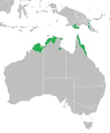 | Range across northern Australia, southern New Guinea and Aru Islands (Trangan) | |