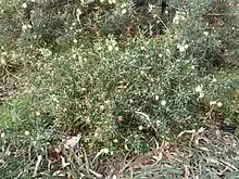 Banksia obovata, commonly known as wedge-leaved dryandra,[2] is a species of shrub that is endemic to Western Australia. It has hairy stems, serrated, wedge-shaped to egg-shaped leaves with the lower end towards the base, cream-coloured or pale yellow flowers in heads of up to 100, and egg-shaped follicles. It is found in near-coastal areas in the south of the state.